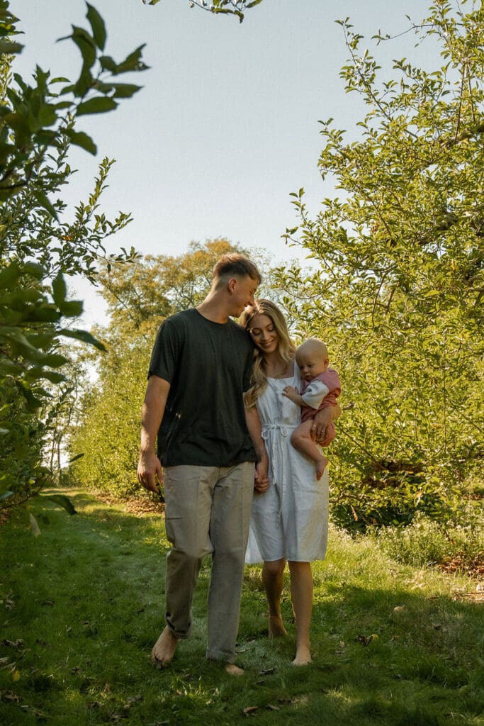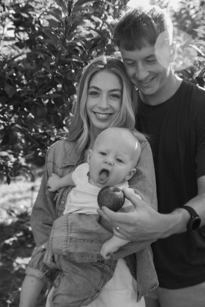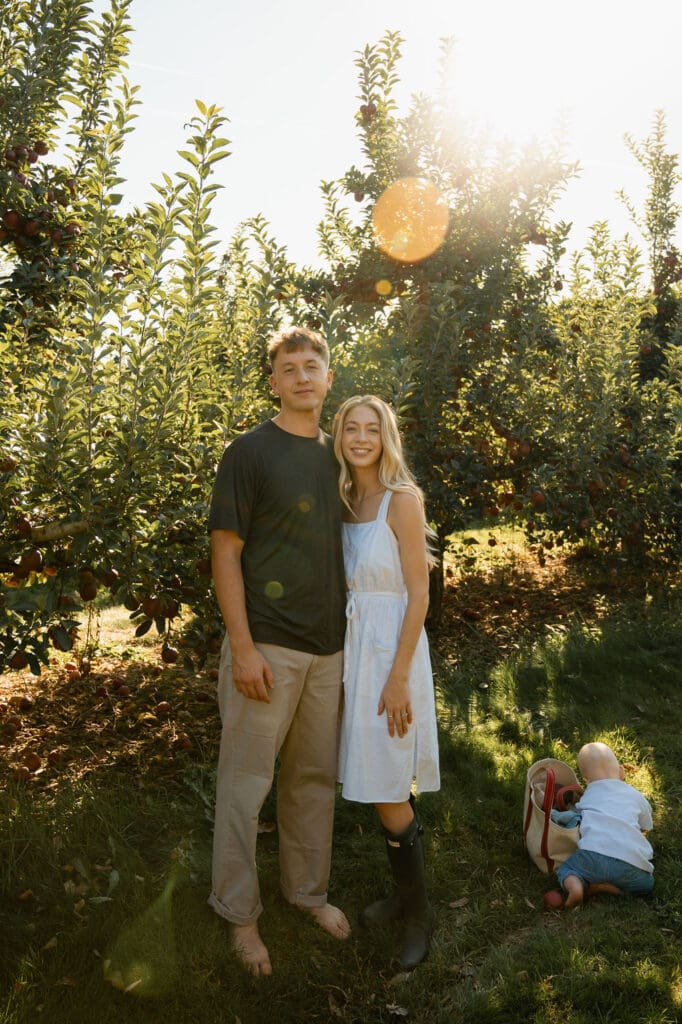 Fall is my absolute favorite season for sessions, and this orchard adventure was everything I love about it. While we wandered through the rows of apple trees, Teddy was in his element – happily exploring every corner of the orchard, absolutely fascinated by the grass beneath his feet. Watching him discover the world while his parents soaked in these fleeting moments reminded me that the best photos don’t need elaborate poses or forced smiles. Sometimes magic is just a family being themselves, doing an activity they love, while I capture the authentic connection at their core.