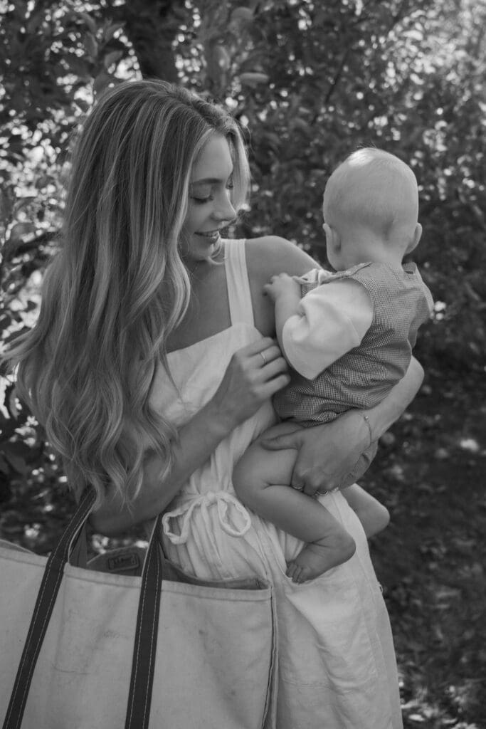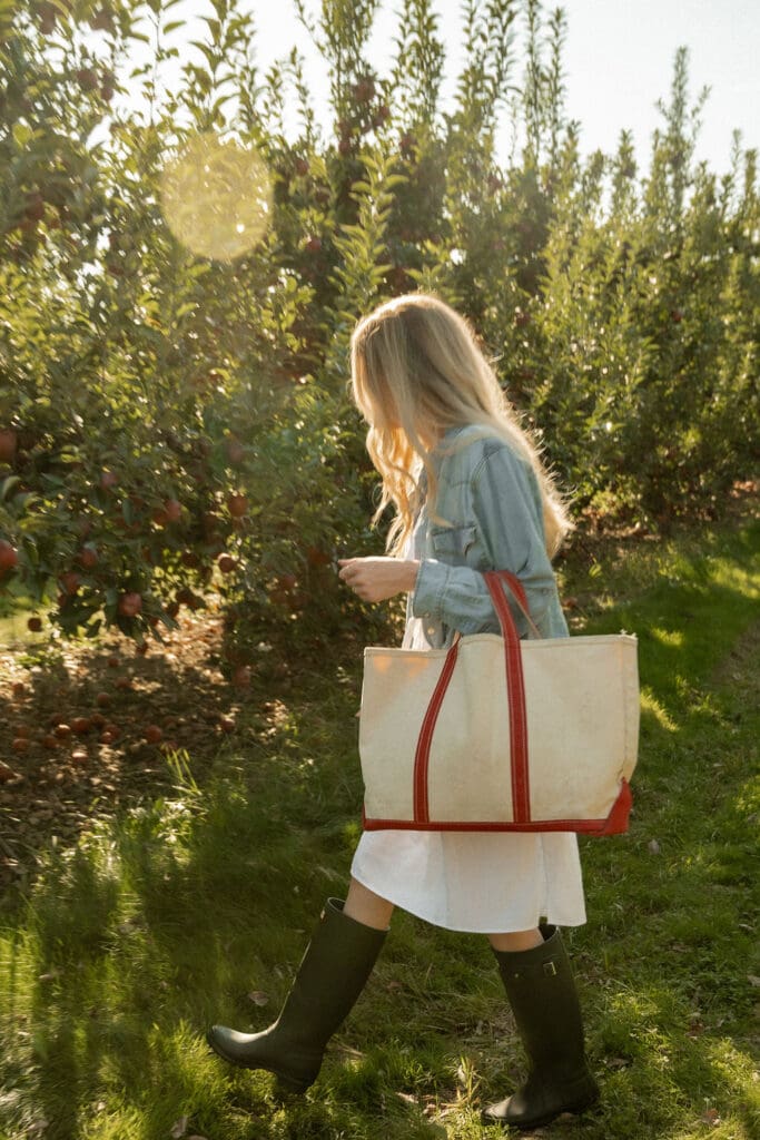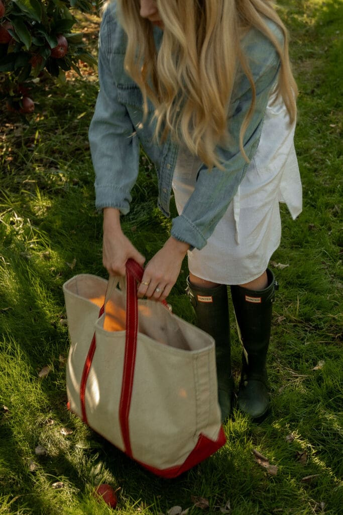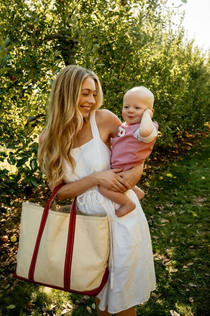 And can we talk about Lindsey’s styling? Hunter boots and a classic boat and tote bag that were both gorgeous and perfectly functional for apple picking. She understood the assignment – looking effortlessly put-together while being completely practical. And Teddy’s little apple overalls? The cherry on top of an already perfect fall aesthetic.