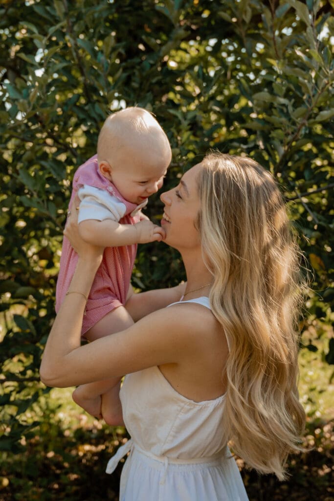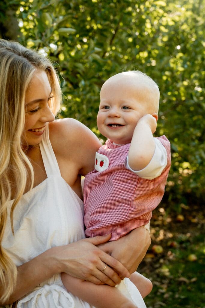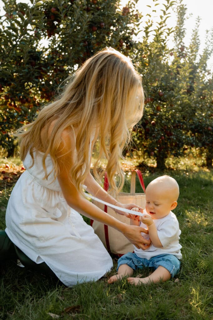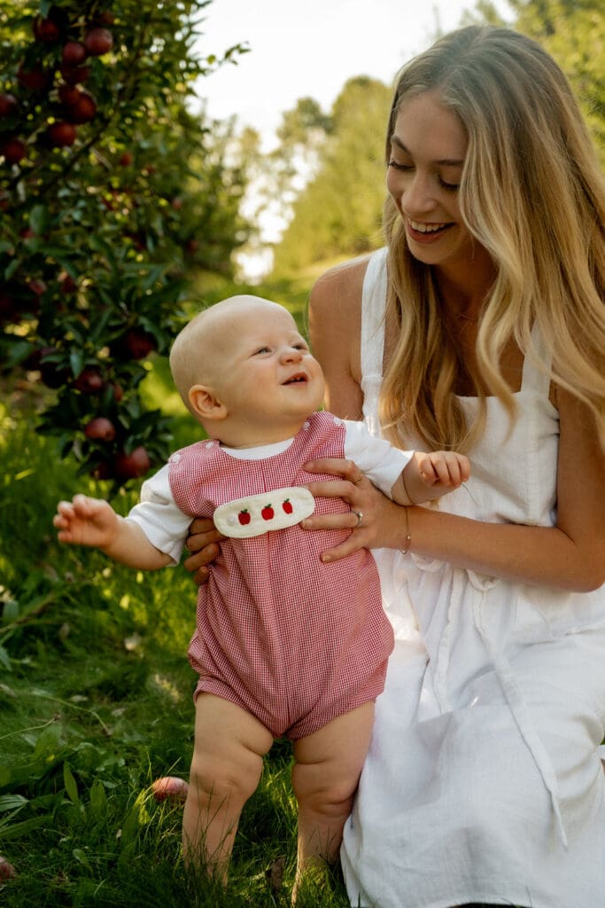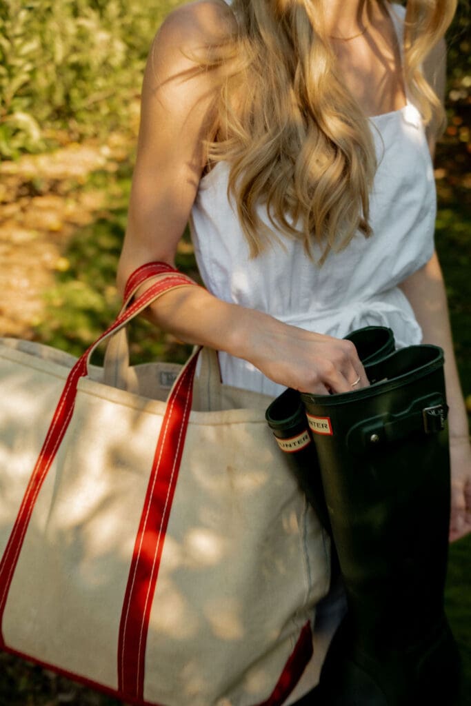 And can we talk about Lindsey’s styling? Hunter boots and a classic boat and tote bag that were both gorgeous and perfectly functional for apple picking. She understood the assignment – looking effortlessly put-together while being completely practical. And Teddy’s little apple overalls? The cherry on top of an already perfect fall aesthetic.